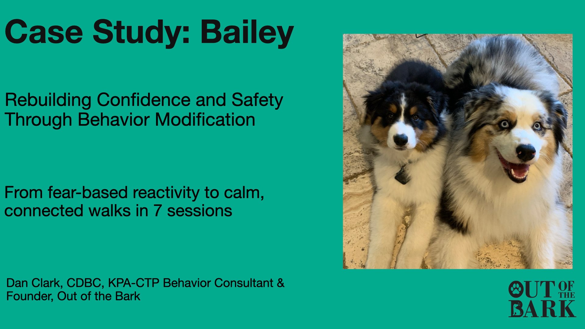 A full case study that captures the progress made over seven behavior modification sessions, rebuilding confidence and safety and showing the shift from fear-based reactivity to calmer, more connected walks.